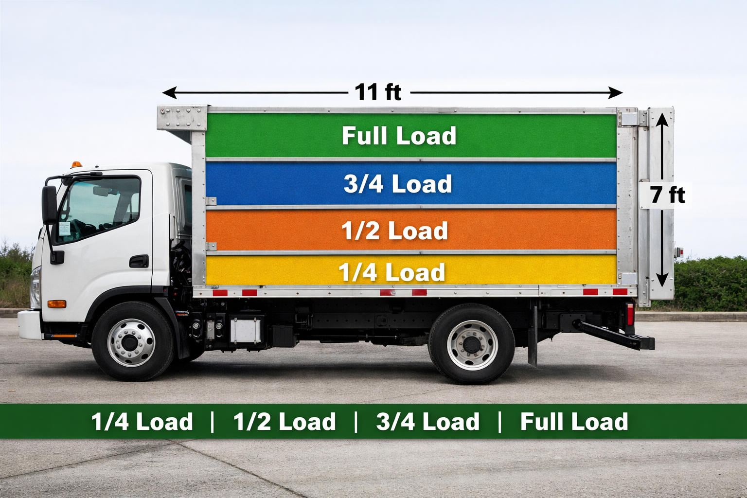 Our pricing is based on how much space your items take up in our truck. We use tiered, volume-based rates — whether it’s just a couple of boxes or a full truckload.