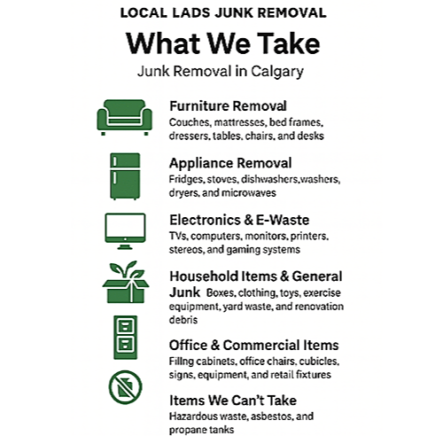 At Local Lads Junk Removal, we serve both residential and commercial clients across Calgary and the surrounding area. Whether you’re clearing out a home, renovating an office, or dealing with construction debris, our team has you covered.